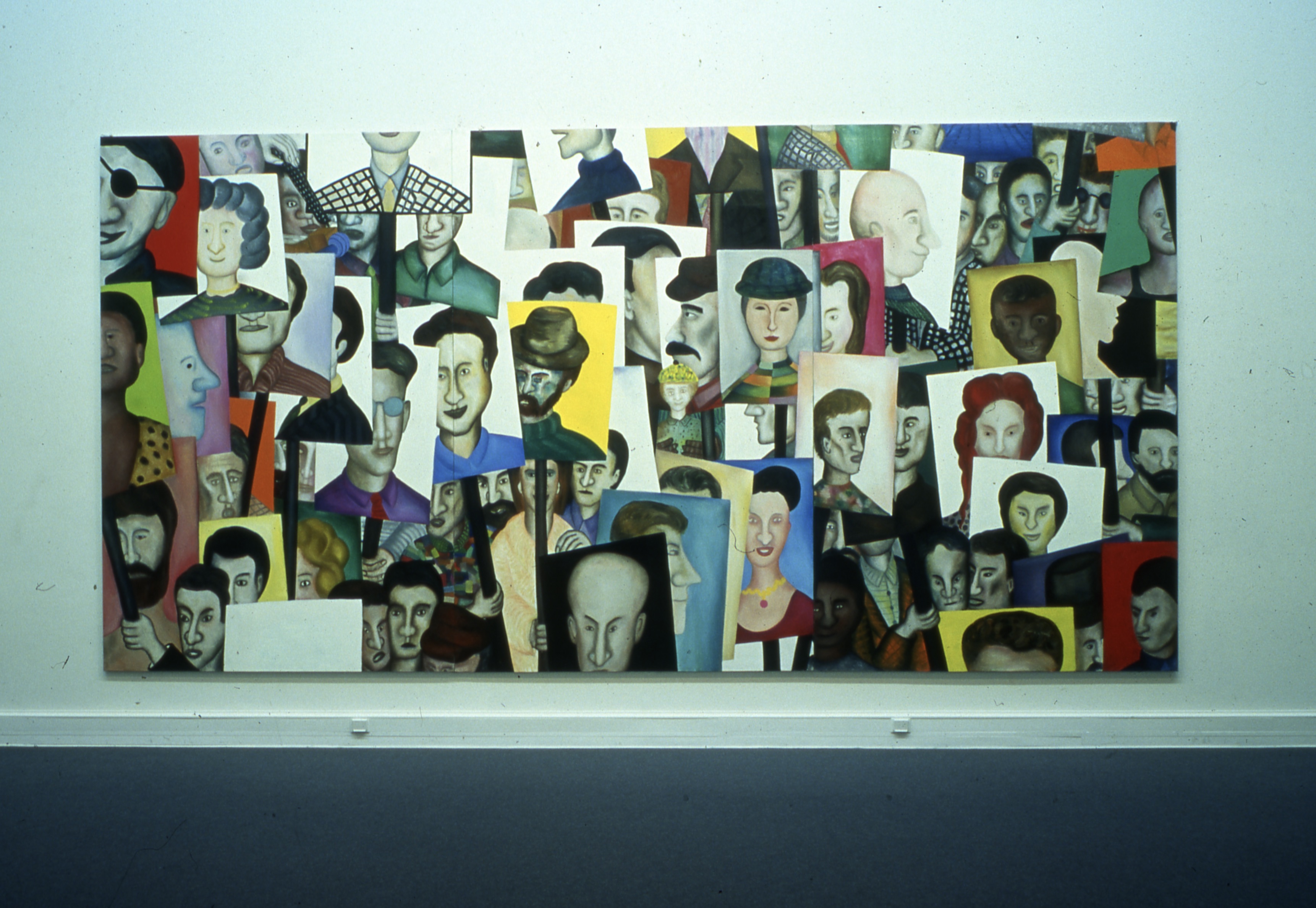 Realizzato su tre grandi tele verticali, La rivoluzione siamo noi (1990-1991) si inserisce in questo momento della sua pratica. Esposto all’interno della rassegna Una scena emergente, il dipinto venne subito acquistato dal Centro Pecci. Il grande olio su tela rappresenta un corteo di protesta. I cartelli retti dai manifestanti, tuttavia, non riportano slogan politici, ma raffigurano altri volti, in tutto assimilabili a quelli dei protagonisti del corteo. In una raffinata moltiplicazione di quadri nel quadro, l’immagine di corteo pone in questione lo statuto stesso dell’immagine dipinta e la sua possibilità di essere riprodotta. Ripartendo da un celebre slogan di Joseph Beuys – «La rivoluzione siamo noi», appunto – Cingolani propone un’ironica rivoluzione tutta artistica, ricondotta sul piano rassicurante della pittura, seppur di grande formato: i ritrattati, infatti, «non manifestano per i propri diritti, ma reclamano i propri doveri. Non abbiamo diritto a un bel niente, ma dobbiamo conquistarci il diritto di costringere il mondo ad assolvere il proprio dovere».